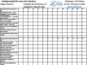 Schlafprotokoll für zwei/vier Wochen